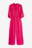 Bright Pink Satin Tie Neck Jumpsuit