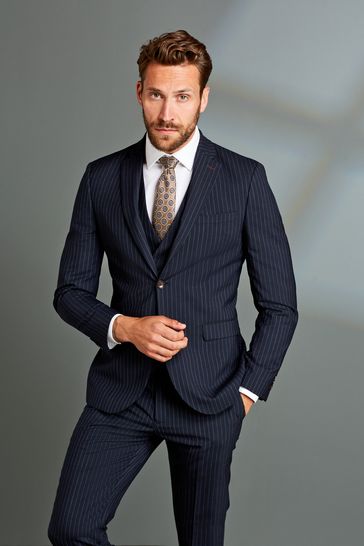 Blue Slim Fit Signature TG Di Fabio Wool Rich Stripe Suit: Jacket