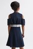 Get her party ready with the Paulina dress. It’s crafted in an off-the-shoulder design and features a frill detail across the chest for a feminine note. An elasticated waistband cinches the look, whilst its embellished fabrication adds a touch of sparkle. Style with her favourite flats. Crew neckline. Off-the-shoulder design. Frill detailing. Short sleeves. Embellished, elasticated waistband. Zip closure to reverse.
