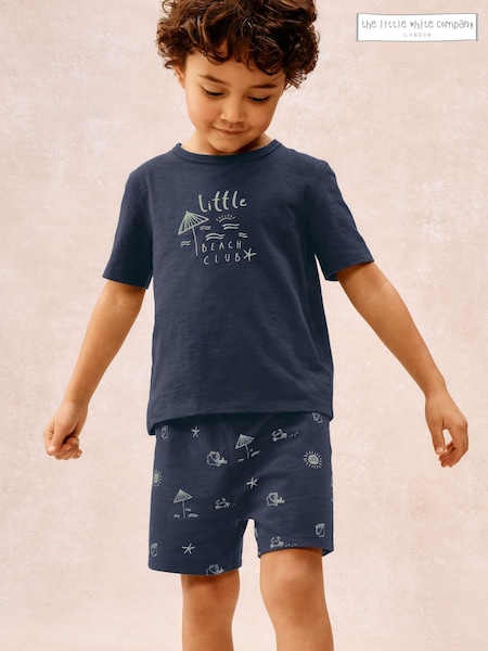 The White Company Blue Cotton Blend Glow In The Dark Beach Club Relaxed Shortie T-Shirt and Short Set