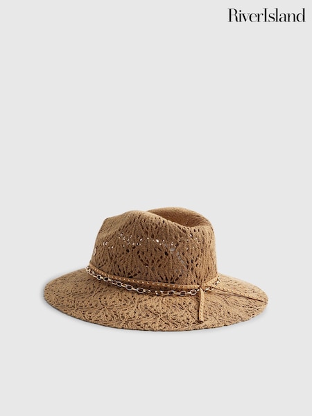 River Island Brown Dark Ribbed Brushed Pom Pom Beanie