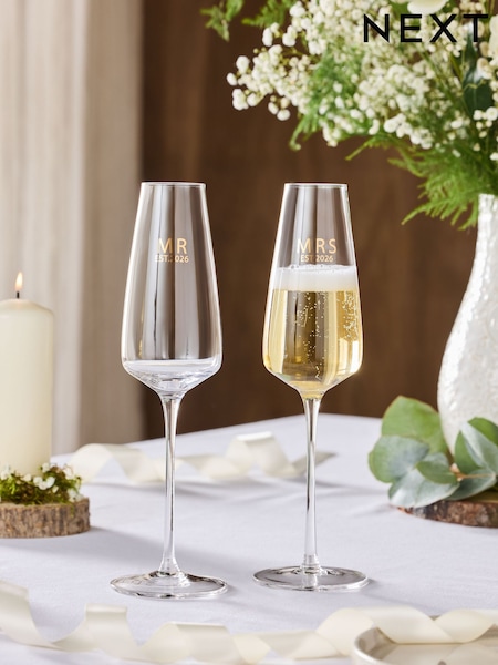 Set of 2 Clear 2026 Mr and Mrs Flute Glasses