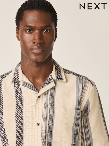 Red Stripe Textured Short Sleeve Shirt