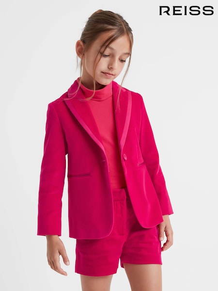 Reiss Bright Pink Bree Single Breasted Velvet Blazer