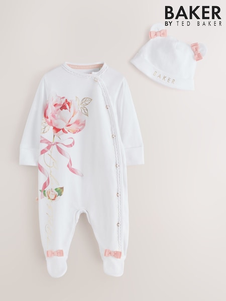 Baker by Ted Baker Flower Placement White Sleepsuit & Hat Set