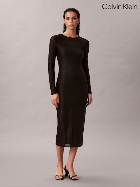 Calvin Klein Black Allover Emblem Logo Lace Maxi Dress