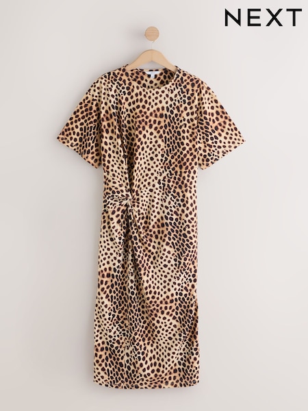 Leopard Print Jersey Twist T-Shirt Summer Dress