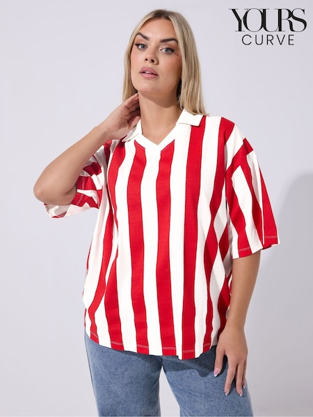 Yours Curve Red Limited Collar Stripe Top