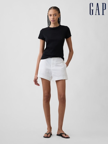 Gap White 4inch Mid Rise Linen-Blend Shorts