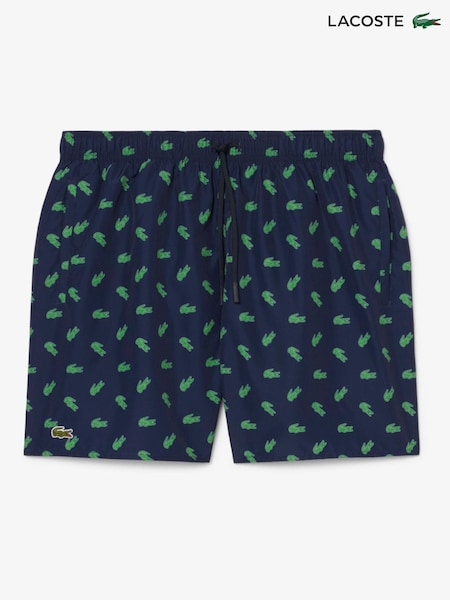 Lacoste Blue Mid Length Crocodile Print Swim Trunks