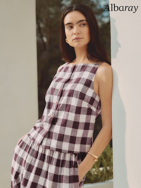 Haut boutonné Albaray bordeaux à carreaux vichy