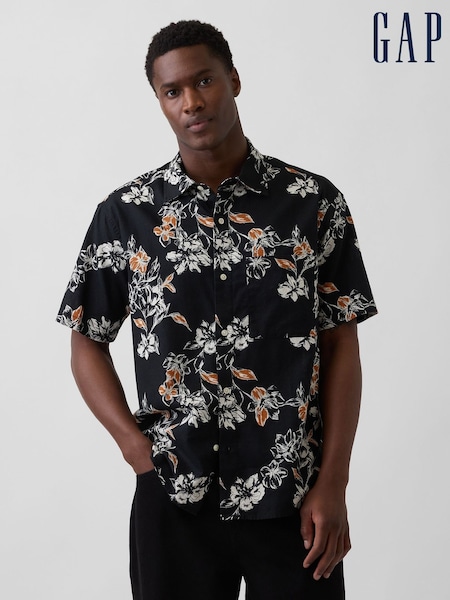 Floral noir - Chemise Gap texturée en lin et coton