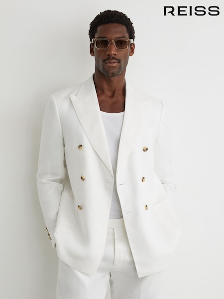Blanc - Blazer ajusté Reiss Atlantic Db à double boutonnage en sergé de lin