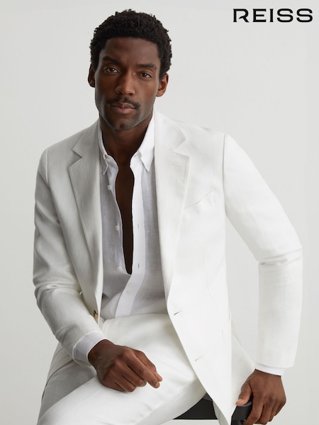 Blanc - Reiss Atlantic Linen-Twill Single-Breasted Tailored-Fit Blazer
