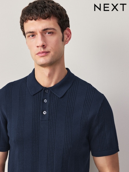 Bleu marine - Cotton Rich Pointelle Knit Polo Shirt