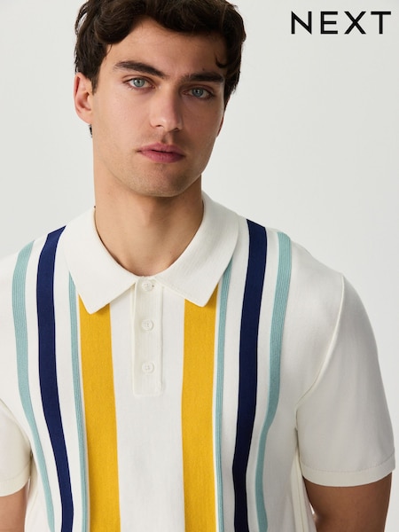 Bleu - Cotton Rich Pointelle Stripe Short Sleeve Knit Polo Shirt