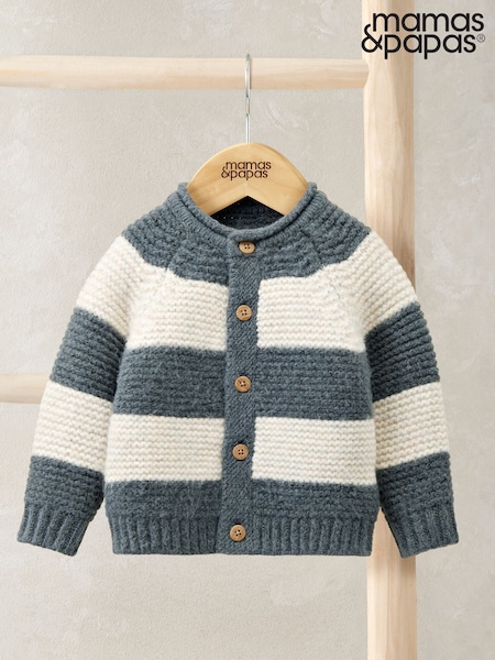 Bleu marine - Cardigan rayé en maille bébé avec col (0mois-2ans)