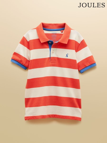 Orange et blanc - Joules Boys' Woody Striped Cotton Polo Shirt