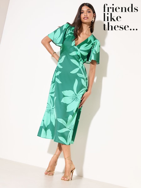Noir - Friends Like These Robe mi-longue en satin imprimée fleuri à Col en V