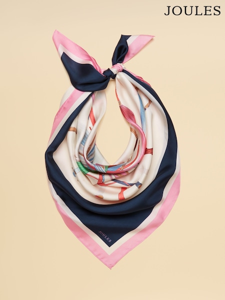 Cream & Navy Printed - Joules Écharpe Bloomfield Square 100% soie