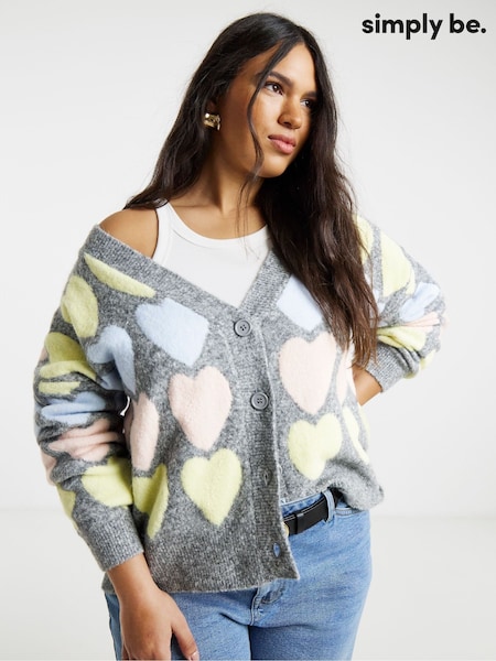 Gris - Anthology By JD Williams Cardigan haut de gamme en laine mérinos Blend Col rond