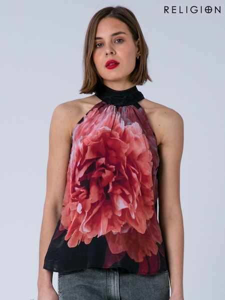 Rose - Religion Lauren Halter Neck Top With Long Sash In Beautiful Floral Print