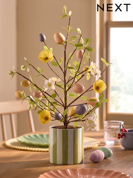 Plante artificielle dans une jardinière de poulet en céramique à pois